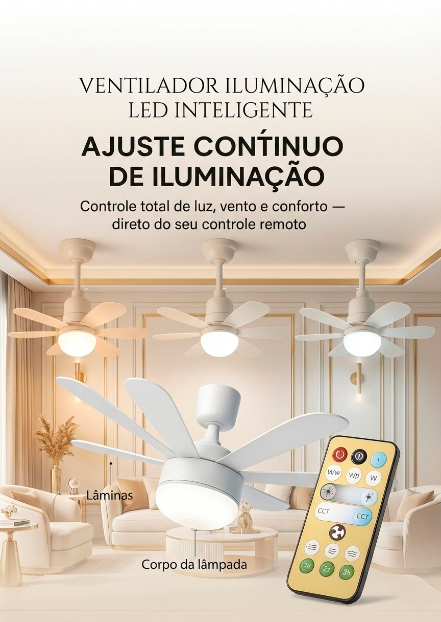 Ventilador + Iluminação LED em 1 Só Produto